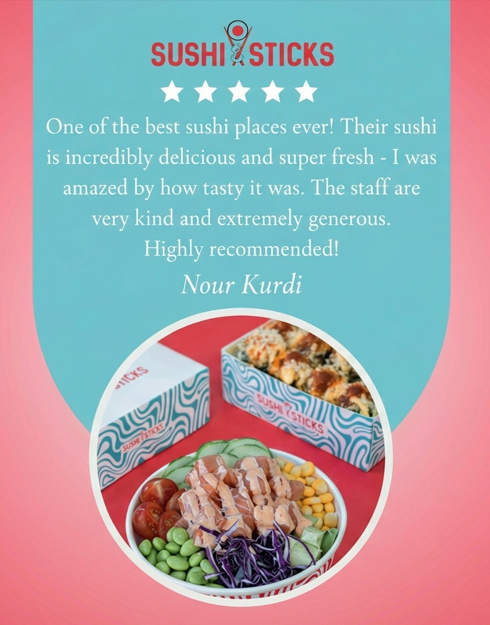 Sushi & Sticks was created for guests who love clean flavours, beautiful craft, and a little surprise in every bite. We take the artistry of sushi and pair it with modern favourites — designed for both quick takeaways and relaxed dine‑ins.